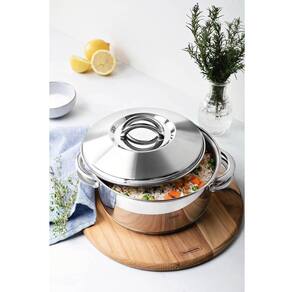 - A Caçarola Rasa em Aço Inox com Fundo Triplo com Tampa e Alças 24 cm de diâmetro 4,7 L irá brilhar com você na sua cozinha, não importa a quantidade ou a complexidade da receita. Faça pratos incríveis, cheios de sabor e que dão aquele calorzinho do coração.