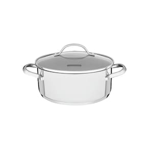 Caçarola Rasa Tramontina Una em Aço Inox com Fundo Triplo e Tampa de Vidro 20 cm 2,9 L