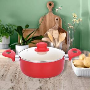 Ficha Técnica: Caçarola 20cm - Altura: 8cm - Altura com tampa: 13,5cm - Diâmetro: 20cm - Comprimento com cabo: 34cm - Espessura: 1.8 mm - Material: Alumínio com revestimento cerâmico - Marca: Class Home - Cor: Vermelho