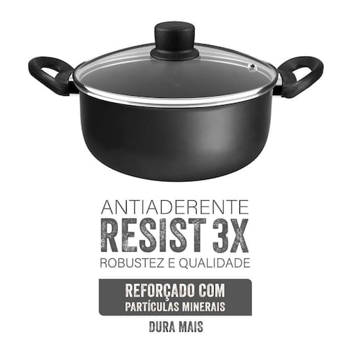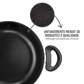 Linha Rochedo Robusta, com antiaderente Resist 3x que oferece maior robustez e qualidade. Reforçado com partículas minerais, dura mais. A Caçarola Rochedo Robusta Grafite 20cm irá surpreender sua família com sua durabilidade e resistência. Conheça todos os diferenciais dessa linha: