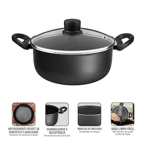 Antiaderente Resist 3X: Robustez e Qualidade. Reforçado com partículas minerais, dura mais.Durabilidade e resistência: Alta espessura para durar mais.Base Limpa Fácil: Não mancha, não gruda e é fácil de limpar.Marcas de Medidas: Para facilitar o preparo.Além de contar com a qualidade da marca Rochedo, presente no Brasil há mais de 100 anos, a Caçarola Rochedo Robusta Grafite 20cm é livre de substâncias tóxicas (PFOA), garantindo a segurança no uso do produto. Pode ser utilizada em fogão a gás, vitrocerâmico e elétrico, podendo também ser levada à máquina de lavar louças.