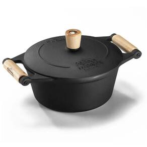 Caçarola Tradição 24 cm 4 L em Ferro Fundido e Alça de Madeira Panela Mineira - Especificações TécnicasDimensões Produto (Compr. X Larg. X Alt.): 24 x 24 x 17 cm.