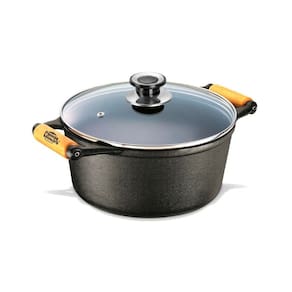 Caçarola Tradição Ferro T Vidro Panela Mineira AM 28cm 6L A Caçarola Tradição Alça de Madeira e Tampa de Vidro da Panela Mineira possui um design aperfeiçoado, fundo reto preto, bordas alongadas e tampa moderna. Com excelente distribuição e retenção de calor característico do ferro fundido, esse produto se torna ideal para assar, grelhar, fritar e cozinhar. Seu formato redondo é muito utilizado para o preparo de arroz, bife, frango, feijão, carnes e legumes, cozinhando os alimentos uniformemente, de maneira lenta e com muita maciez, o que garante ainda mais sabor e qualidade às receitas. Onde Usar: Devido a sua versatilidade e durabilidade, pode ser utilizado em fogões a gás, a lenha, elétricos, cooktops de indução e vitro-cerâmicos. A alça de madeira não permite que o produto seja levado ao forno, churrasqueira ou fogo de chão. Orientação de Uso e Conservação:Antes do primeiro uso: Lave com água e sabão, seque bem com um pano e leve ao fogo para remover toda a umidade. Já vem pronta para uso, então não precisa ser curada. Guarde em um local seco. Após cada uso: Lave com água e sabão, usando uma esponja ou escova para remover todos os resíduos de alimentos. Se restarem resíduos, ferva água com um pouco de detergente para soltá-los. Pintura: Revestimento atóxico que garante durabilidade e proteção prolongada, sem causar nenhum dano à saúde. Características Técnicas e Medidas:Altura com Tampa: 19cm.Altura sem Tampa: 13cm.Material: Ferro Fundido.Modelo: Redonda.Diâmetro: 28cm.Linha: Tradição.Alça: Madeira.Peso: 6,75Kg.Litragem: 6L.Chapa: Lisa. Itens Inclusos: 01 Caçarola Tradição Panela Mineira Alça Madeira 28cm 6L.01 Tampa de Vidro Temperado Panela Mineira 28cm. 01 Batoque em Platinela. Código: 377PMProdutoLojaPlast.
