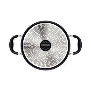Caçarola Tramontina Mônaco Induction Com Revestimento Antiaderente Starflon Premium Preto Com Tampa 28cm Preparar aquele risoto delicioso ficou muito melhor com a Caçarola Tramontina Mônaco Induction em Alumínio com Revestimento Interno e Externo Antiaderente Starflon Premium Preto com Tampa de Vidro 28 cm 6,4 L! Ela é produzida em alumínio com espessura especial e revestimento interno de antiaderente Starflon Premium, características que proporcionam um cozimento de forma rápida e eficaz e evita que os alimentos grudem; Seu cabo metálico com proteção de silicone reduz a propagação de calor, aumentando a e deixando seu manuseio muito mais confortável. Ela ainda é fácil de limpar e pode ser lavada na máquina de lavar louças, facilitando seu dia a dia. Um item durável, não prejudicial a saúde e que acompanha tampa de vidro temperado com bordas em aço inox que auxilia e facilita o preparo dos alimentos! Recomendações de Uso: A capacidade volumétrica máxima para cozimento é de 3/4 da capacidade total da peça. Posicione os cabos dos utensílios voltados ao centro do fogã fogões com grade, centralize a peça e alinhe o cabo com a grade. Utensílios quentes devem estar fora do alcance das crianç produto não pode sofrer modificações. Antes do primeiro uso, lave com esponja macia, sabão neutro ou detergente líquido. Depois de secar, unte a área interna com óleo ou gordura e leve ao fogo por um ou dois minutos. Deixe esfriar e lave novamente. Seu utensílio Starflon está pronto para uso com ou sem gordura, sempre em fogo baixo ou médio (nunca superior a 350C). Para mexer os alimentos use somente utensílios de silicone, nylon ou madeira. Evite a imersão do utensílio quente em água fria. Nunca utilize produtos abrasivos na lavagem. Se deixar queimar alimentos, umedeça a área e reserve até que possa remover os resíduos grudados com esponja e sabã descarte dos produtos e embalagens siga as orientações de reciclagem produto não necessita de manutenção, apenas limpeza. Informações Adicionais: