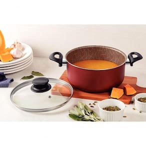 A caçarola Tramontina Paris em alumínio com revestimento interno e externo em antiaderente Starflon Max vermelho com tampa de vidro 20 centímetros 2,9 litros vai ser sua ajudante principal durante o preparo das refeições. É produzida em alumínio com espessura de 1,8 milímetros e revestimento interno e externo de antiaderente Starflon Max. Devido a essas características, ela proporciona um cozimento rápido e uniforme dos alimentos, evita que eles grudem em sua superfície e é superfácil de limpar. Suas alças são em baquelite e o pegador da sua tampa de vidro em nylon, dois materiais antitérmicos que não aquecem e oferecem maior e conforto ao manuseio. Ela ainda pode ser levada à máquina de lavar louças e vai otimizar seu tempo na cozinha!