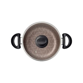 Caçarola Tramontina Paris em Alumínio com Revestimento Interno e Externo em Antiaderente Starflon Max Vermelho com Tampa de Vidro 20 cm 2,9 L A caçarola Tramontina Paris em alumínio com revestimento interno e externo em antiaderente Starflon Max vermelho com tampa de vidro 20 centímetros 2,9 litros vai ser sua ajudante principal durante o preparo das refeições. É produzida em alumínio com espessura de 1,8 milímetros e revestimento interno e externo de antiaderente Starflon Max. Devido a essas características, ela proporciona um cozimento rápido e uniforme dos alimentos, evita que eles grudem em sua superfície e é superfácil de limpar. Suas alças são em baquelite e o pegador da sua tampa de vidro em nylon, dois materiais antitérmicos que não aquecem e oferecem maior segurança e conforto ao manuseio. Ela ainda pode ser levada à máquina de lavar louças e vai otimizar seu tempo na cozinha! Corpo de alumínio com espessura de 1,8 mm que proporciona cozimento rápido e uniforme. Revestimento interno e externo de antiaderente Starflon Max que não gruda, é fácil de limpar, mais durável e não é prejudicial à saúde, pois é livre de PFOA. Tampa de vidro temperado, com saída de vapor e borda de aço inox. Alças de baquelite antitérmico e pegador de nylon que oferecem segurança durante o manuseio. Pode ir à máquina de lavar louças facilitando seu dia a dia. Cuidados com o produto A capacidade volumétrica máxima para cozimento é de 3/4 da capacidade total da peça. Em fogões com grade, centralize a peça e alinhe as alças com a grade. Centralize seu utensílio com a chama ou fonte de calor. Utensílios quentes devem estar fora do alcance das crianças. Antes do primeiro uso, lave com esponja macia, sabão neutro ou detergente líquido. Depois de secar, unte a área interna com óleo ou gordura e leve ao fogo por um ou dois minutos. Deixe esfriar e lave novamente. Seu utensílio Starflon está pronto para uso com ou sem gordura, sempre em fogo baixo ou médio (nunca superior a 260 °C). Para mexer os alimentos use somente utensílios de silicone, nylon ou madeira. Com o uso, as alças e o pegador podem afrouxar devido à dilatação normal dos materiais. Reaperte apenas o suficiente, sem forçar. Limpeza: Evite a imersão do utensílio quente em água fria. Nunca utilize produtos abrasivos na lavagem. Se deixar queimar alimentos, umedeça a área e reserve até que possa remover os resíduos grudados com esponja e sabão. Para descarte do produto e embalagem siga as orientações de reciclagem vigentes. Garantia 90 dias para vícios ou defeitos de fabricação.