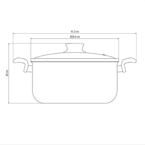 Corpo de alumínio com espessura de 1,8 mm que proporciona cozimento rápido e uniforme. Revestimento interno e externo de antiaderente Starflon Max que não gruda, é fácil de limpar, mais durável e não é prejudicial à saúde, pois é livre de PFOA. Tampa de vidro temperado, com saída de vapor e borda de aço inox. Alças de baquelite antitérmico e pegador de nylon que oferecem segurança durante o manuseio. Pode ir à máquina de lavar louças facilitando seu dia a dia.