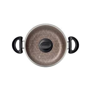 Caçarola Tramontina Paris Antiaderente Starflon Max Vermelho com Tampa de Vidro 28 cm 8 L Tramontina - Caçarola Tramontina Paris em Alumínio com Revestimento Interno e Externo em Antiaderente Starflon Max Vermelho com Tampa de Vidro 28 cm 8 L A caçarola Tramontina Paris em alumínio com revestimento interno e externo em antiaderente Starflon Max vermelho com tampa de vidro 28 centímetros 8 litros vai deixar suas refeições muito mais práticas de serem feitas e ainda irá agregar um estilo muito especial a sua cozinha. É produzida em alumínio com espessura de 1,8 milímetros e conta com revestimento interno e externo em antiaderente Starflon Max, ambas características que proporcionam um cozimento rápido e uniforme dos alimentos, evitam que eles grudem em sua superfície, e devido a isso, a tornam também muito mais fácil de limpar. Para sua segurança, as alças são em material antitérmico, assim como o pegador da sua tampa de vidro. Ela vem com tampa de vidro temperado e pode ir à máquina de lavar louças, otimizando suas tarefas na cozinha Corpo de alumínio com espessura de 1,8 mm que proporciona cozimento rápido e uniforme. Revestimento interno e externo de antiaderente Starflon Max que não gruda, é fácil de limpar, mais durável e não é prejudicial à saúde, pois é livre de PFOA. Tampa de vidro temperado, com saída de vapor e borda de aço inox. Alças de baquelite antitérmico e pegador de nylon que oferecem segurança durante o manuseio. Pode ir à máquina de lavar louças facilitando seu dia a dia. Cuidados com o produto A capacidade volumétrica máxima para cozimento é de 3/4 da capacidade total da peça. Em fogões com grade, centralize a peça e alinhe as alças com a grade. Centralize seu utensílio com a chama ou fonte de calor. Utensílios quentes devem estar fora do alcance das crianças. Antes do primeiro uso, lave com esponja macia, sabão neutro ou detergente líquido. Depois de secar, unte a área interna com óleo ou gordura e leve ao fogo por um ou dois minutos. Deixe esfriar e lave novamente. Seu utensílio Starflon está pronto para uso com ou sem gordura, sempre em fogo baixo ou médio nunca superior a 260 C . Para mexer os alimentos use somente utensílios de silicone, nylon ou madeira. Com o uso, as alças e o pegador podem afrouxar devido à dilatação normal dos materiais. Reaperte apenas o suficiente, sem forçar. Limpeza: Evite a imersão do utensílio quente em água fria. Nunca utilize produtos abrasivos na lavagem. Se deixar queimar alimentos, umedeça a área e até que possa remover os resíduos grudados com esponja e sabão. Para descarte do produto e embalagem siga as orientações de reciclagem vigentes. 90 dias para vícios ou defeitos de fabricação. Características Gerais do Produto: : 3 meses Contra defeitos de fabricação Marca: Não Informado