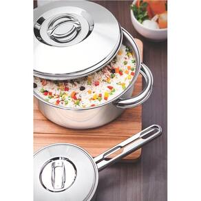 - Produzida em aço inox com fundo triplo (aço inox + alumínio + aço inox), será possível que o calor seja distribuído de forma uniforme, garantindo um cozimento rápido, além de manter os alimentos aquecidos por mais tempo.