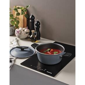 Para preparar refeições completas, a caçarola Tramontina Spezia Induction em alumínio com revestimento interno e externo em antiaderente Starflon Excellent azul ardósia 20 centímetros de diâmetro e 2,4 litros de capacidade é ideal. O revestimento Starflon Excellent, garante aquecimento uniforme e evita que os alimentos grudem. Com tampas de alumínio e pegadores de nylon, ela é prática e fácil de manusear. Compativel com todos tipos de fogões, incuindo indução.