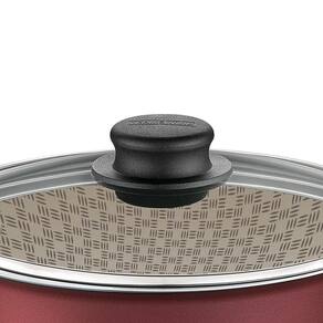 Características: Marca: Tramontina Modelo: Turim Cor: Vermelho Material: Alumínio Tampa de vidro temperado Alças: Baquelite Antitérmico Revestimento: Antiaderente Pode ir à máquina de lavar louças: Sim Dimensões do produto: 30cm (C) x 19,2cm (L) x 12,6cm (A) Peso aproximado: 625g