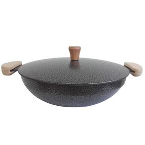 Caçarola Wok Com Tampa nº 28 3 Litros Linha Nobre Craquelado Caçarola alumínio fundido Craquelado 28x8 cm - 3 litros - Produto feito com matéria prima de alta qualidade sem risco de escurecer - Certificado pelo Inmetro 002 089/2019 - Durabilidade garantida - Cabos e puxadores em madeira, garantindo maior segurança no manuseio - de três meses do fabricante - Rápido aquecimento - Conserva calor por mais tempo - Difícil de amassar - Tampa grossa Aluminio Bem Forte Marca: Bem Forte