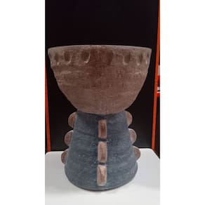 Altura: 43,8 cm Largura: 34,5 cm Profundidade: 34,5 cm Peso: 4,37 Kg Diâmetro da Base: 28 cm Diâmetro do Corpo: 25 cm Diâmetro do Topo: 30 cm Material: Resina Cor: Cinza