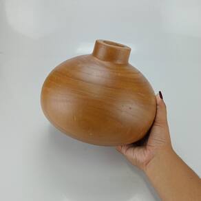 Altura: 17 cm Largura: 19,9 cm Profundidade: 19,9 cm Peso: 0,97 Kg Diâmetro do Topo: 7,2 cm Material: Madeira Cor: Marrom