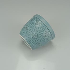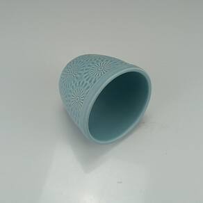 Altura: 9 cm Largura: 10,6 cm Profundidade: 10,6 cm Peso: 0,28 Kg Diâmetro da Base: 6,8 cm Material: Ceramica Cor: Azul