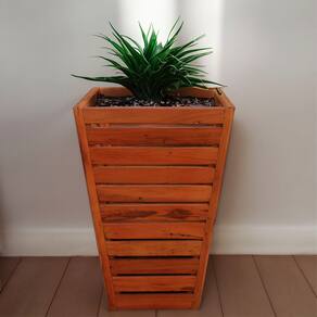 Cachepot Cone 60cm Natural em madeira maciça, ideal para horta, jardim ou decoração. Design sofisticado e resistente, com acabamento em verniz especial que garante durabilidade e charme aos ambientes.