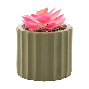 Cachepot de Cimento C/Suculenta Lines Verde Musgo 7,5cm 61587 - Wolff - Dorémi Casa e Decor