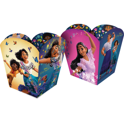Cachepot Encanto C/4 Regina. Transforme sua festa no mundo mágico de Encanto! Faça da sua comemoração uma emocionante jornada de aventuras, magias e músicas contagiantes com a família Mirabel. O cachepot pode ser utilizado como centro de mesa (com balões e guloseimas), e também para servir pipoca, biscoito, docinho e salgadinho.