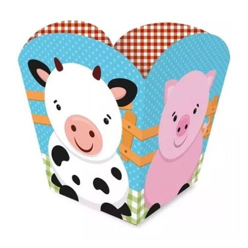 Cachepot Fazendinha C/4 Regina. Transforme a sua comemoração em uma verdadeira aventura rural inesquecível com a Fazendinha e seus bichinhos! O cachepot pode ser utilizado como centro de mesa (com balões e guloseimas), e também para servir pipoca, biscoito, docinho e salgadinho.