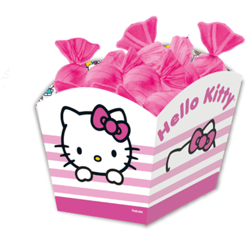 Cachepot Hello Kitty C/8 Festcolor. Sua aparência fofa e uma personalidade cheia de estilo, encantam pessoas de todas as idades pelo mundo. Conhecida por seu laço rosa, sua expressão suave e sorridente, Hello Kitty, o tema que vai dar um toque de doçura e magia para sua festa! O cachepot pode ser utilizado como centro de mesa (com balões e guloseimas), e também para servir pipoca, biscoito, docinho e salgadinho.
