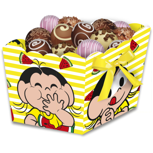Cachepot Magali C/8 Festcolor. Magali uma garotinha meiga e delicada sempre disposta a ajudar seus amigos. Conhecida por sua fome de leão, e sua fruta favorita a melancia, o tema da Magali irá trazer muita diversão e alegria para sua festa! O cachepot pode ser utilizado como centro de mesa (com balões e guloseimas), e também para servir pipoca, biscoito, docinho e salgadinho.