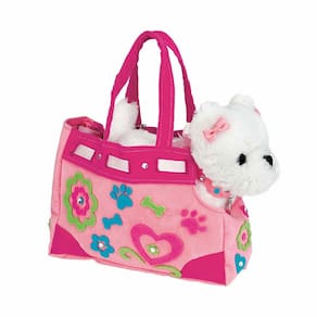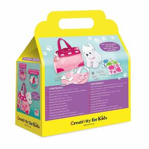 Decore e complemente a bolsa chique da sua cachorrinha diva, coleira de veludo, guia de cetim, capa de veludo, laços de cetim e etiqueta de identificação em osso de cachorro. Detalhes de feltro e strass rápidos e fáceis de remover, não são necessárias cola ou tesouras.