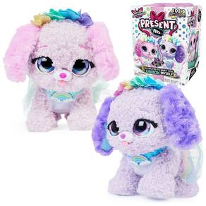 Apresentamos a nova linha de Present Pets, com cachorrinhos Poodle interativos que se desencaixotam sozinhos. Cada caixa temática contém um dos dois filhotes da caixa e o estilo pode variar e essa é a surpresa, Missy ou Blossom, que vêm com uma coroa de flores coloridas, saia de tule, asas de fada iridescentes, olhos expressivos e pelo macio e encaracolado. Para iniciar a revelação, basta desembrulhar a camada externa da caixa e puxar a etiqueta para presente. A caixa começará a tremer enquanto seu filhote de fantasia abre caminho para fora Seu cachorrinho cantará uma música mágica especial de unboxing e você poderá descobrir sua personalidade lúdica enquanto brincam juntos. Além disso, cada Fairy Pup tem dois jogos temáticos de latidos que vocês podem jogar juntos Enchanted Echo e Mensagens Mágicas. Com mais de 100 sons e ações, Present Pets é o presente perfeito para meninas de 5 anos ou mais em qualquer ocasião. Inclui 6 pilhas AAA e um guia de desembalagem e instruções coberto pelo compromisso Spin Master Care.