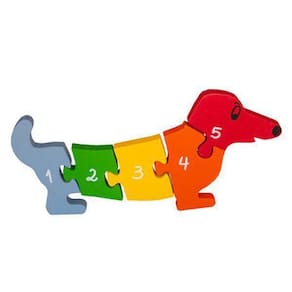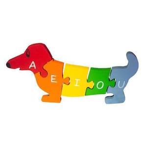 Quebra-cabeça educativo em formato de cachorro, com cinco peças coloridas. De um lado as vogais, do outro a sequência de números de 1 a 5. Brinquedo confeccionado artesanalmente em madeira de reflorestamento e pintado com tinta atóxica. Medidas aproximadas: 30x15x3cm Idade Recomendada: +3 O consumidor terá o prazo de até 90 dias a partir da data da compra, mediante nota/cupom fiscal de venda ao consumidor, para efetuar reclamação decorrente de vício e/ou defeito de fabricação. Não está incluso na garantia: desgaste normal das peças; alterações na tonalidade das cores; peças quebradas devido o uso incorreto ou armazenamento inadequado INMETRO CE -BRI/IQB 05170 NM 300/2002 OCP 0006 Ean: 0736532733399
