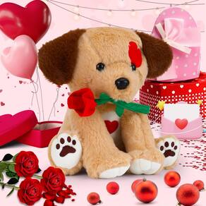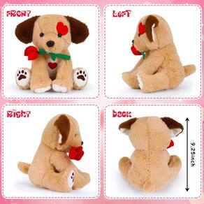 Surpreenda seu ente querido com este adorável bicho de pelúcia no Dia dos Namorados! Este cão de pelúcia é o companheiro fofo perfeito, com seu pelo macio e expressão cativante. Medindo aproximadamente 23,5 cm de altura quando sentado, é o tamanho ideal para aconchegar. A estrutura de alta qualidade garante que esta pelúcia resistirá a anos de amor e carinho. Se você está comemorando uma ocasião romântica ou simplesmente quer colocar um sorriso no rosto de alguém, este bicho de pelúcia fofo certamente encantará. Seu charme irresistível e suavidade abraçável o tornam um presente encantador para todas as idades. Traga para casa este adorável filhote de pelúcia e crie memórias queridas que durarão uma vida inteira. - ?Design atraente? O formato fofo do filhote com uma rosa, o design exclusivo com um coração no peito e nos olhos e a aparência requintada fazem você gostar de relance, e você não pode largar - ?Material seguro?A pelúcia fofa para presente de dia dos namorados é feita de pelúcia curta super macia e enchimento de algodão PP, um material seguro e natural, a mão é delicada e confortável e dá a você uma melhor sensação de toque na pele - ?Tamanho adequado?Este filhote fofo mede aproximadamente 25,4 cm, o tamanho apropriado pode ser aplicado como presente e presente de festa para sua família, o que pode criar uma atmosfera doce e romântica - ?Uso multifuncional?A pelúcia para cães é adequada para todas as idades, de crianças a adultos, pode ser usada como travesseiro decorativo na cama, escritório, carro e em qualquer lugar que você quiser, também pode ser utilizado como travesseiro para dormir, descansar e abraçar - ?Presente romântico? Esta linda pelúcia de Dia dos Namorados é um presente doce e adorável que você pode dar para suas meninas, meninos, adolescentes, amigos, namorados ou colegas de classe em ocasiões especiais