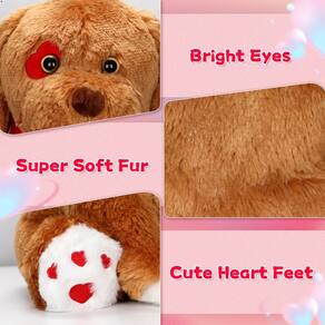 O brinquedo de pelúcia é um símbolo de romance e amor e, com o elemento amor, tornou-se o presente ideal para o Dia dos Namorados, Dia da Formatura, aniversário ou Dia das Mães. Material de alta qualidade: esta pelúcia para cães com rosa para o Dia dos Namorados é feita de tecido de pelúcia curto ultramacio e enchimento de algodão PP. É delicado e confortável, está totalmente cheio, não se deforma quando espremido e tem boa resiliência. - Brinquedo de pelúcia para o Dia dos Namorados: o formato fofo de cachorrinho, com uma rosa na boca e um design exclusivo em forma de coração nos olhos, é um símbolo de um lindo amor e é muito adequado para presentear seus entes queridos neste amoroso Dia dos Namorados! - Presente doce: os brinquedos de pelúcia para cães do Dia dos Namorados são presentes fofos para o Dia dos Namorados, Natal, Ação de Graças e aniversários, e são muito adequados para presentes e decorações de festas temáticas para esposas, namoradas, filhos e amigos. - Uso versátil: a pelúcia para cães é adequada para todas as idades, de crianças a adultos, e pode ser usada como almofada decorativa na cama, no escritório, no carro e em qualquer lugar, ou como travesseiro para dormir, descansar e abraçar - Parceiro fiel: o tamanho da pelúcia do Dia dos Namorados é de 12,5 polegadas, e a cor encantadora e o design fofo fazem você se apaixonar por ela à primeira vista. É muito adequado para abraçar e aconchegar-se, escutará pacientemente seus problemas, sempre o acompanhará e fará você se sentir relaxado e feliz.