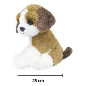 Cachorro De Pelúcia Filhote Sentado Marrom Com Branco 29cm