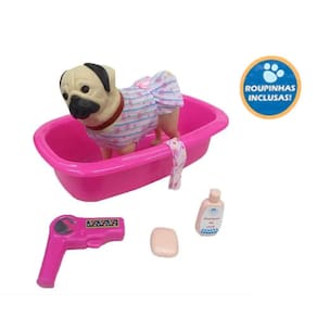 Contém: 1 Cachorrinho, 1 Banheira, 1 secador, 1 Shampoo e 1 Roupinha.