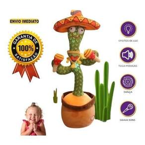 Brinquedo cacto bluetooth falante, dançarino e repetidor O brinquedo é operado por carregamento via usb. Extraordinariamente ele pode cantar, dançar e repetir sua falas, ele é interativo e perfeito para todas as idades, auxiliando nas primeiras palavras do bebe, diverte as crianças e os adultos. Especificações: - bateria recarregável - carregamento usb cabo usb incluso - não precisa de pilhas - material seguro: plush macio, confortável, e não toxico - medidas do produto: 30 x 10 x 12 centímetros - pode repetir as falas, tocar, dançar, mover, girar e acender luzes - repete falas e músicas em português - função bluetooth pode ser como caixinha de som Recomendações - ajuda na estimulação da fala - ele canta, dança, brilha e imita os sons que escuta - garante horas de diversão sadias entre pais e filhos - ele permanece dançando quando conectado ao bluetooth - com ótimo acabamento, pode ser como decoração Atenção: Os brinquedos são enviados aleatoriamentes. Marca: Não Informado Ean: 7894367336628