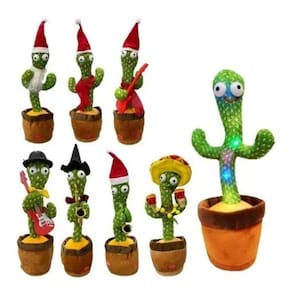 Cactos de pelúcia, ele dança, toca música, acende luzes e repete sua fala.