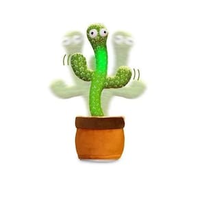 Cacto de pelúcia com seu olhar muito engraçado ele dança, gira, mexe os braços, toca música, acende luzes e repete sua fala. Tecido de malha com efeito tridimensional, macio, confortável, seguro e funcional Ele imita qualquer palavra que disser perto dele, possui luzes coloridas que chamam toda a atenção das crianças. Toca várias canções diferentes em inglês. Feito de material seguro, macio, confortável, e não tóxico.
