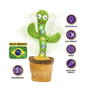 Cactos falante pelúcia dançante toca música repete fala usb recarregável Descrição: Cacto de pelúcia com seu olhar muito engraçado ele dança, gira, mexe os braços, toca música, acende luzes e repete sua fala. Tecido de malha com efeito tridimensional, macio, confortável, seguro e funcional Ele imita qualquer palavra que disser perto dele, possui luzes coloridas que chamam toda a atenção das crianças. Toca 120 canções diferentes. Feito de material seguro, macio, confortável, e não tóxico. Funciona com bateria recarregável via usb Tamanho: 32x10x12 cm Marca: zxz Inmetro nº 302/2021 Não acompanha fonte, somente cabo usb Beneficios: Ajuda na estimulação da fala O brinquedo ajuda na educação das crianças Ajuda no desenvolvimento cognitivo do seu filho Ele pode se tornar um amigo para as crianças Como tem uma aparência muito legal, também pode ser como decoração Ele canta, dança, brilha e imita os sons que escuta Garante horas de diversão sadias entre pais e filhos ======================================================================= Chega de gastar com pilhas, acabou a bateria, só colocar pra carregar na tomada ======================================================================= Pacote acompanha: 1 cacto dançante 1 cabo usb Marca: Não Informado