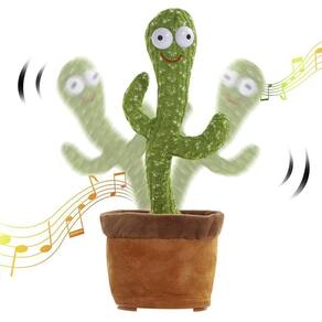 Cacto de pelúcia com seu olhar muito engraçado ele dança, gira, mexe os braços, toca música, acende luzes e repete sua fala. Tecido de malha com efeito tridimensional, macio, confortável, seguro e funcional Ele imita qualquer palavra que disser perto dele, possui luzes coloridas que chamam toda a atenção das crianças. Toca 120 canções diferentes.
