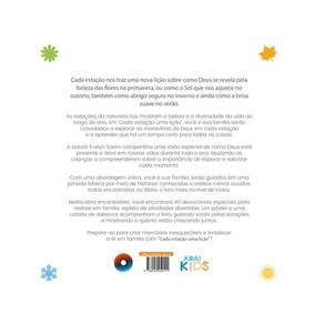 Este livro ensinará algo único sobre como Deus se revela e nos acompanha. Seja pela beleza das flores na primavera ou pelo calor acolhedor do sol no outono, sempre há algo novo para aprender. Em "Cada estação uma lição", a autora Evelyn Soeiro conduz sua família por uma jornada que explora as maravilhas de Deus em todas as épocas do ano. Através de 40 devocionais inspiradores e atividades interativas, este livro ajuda as crianças a crescerem na fé e a compreenderem princípios bíblicos valiosos, como a importância de esperar, obedecer e confiar. Além de histórias bíblicas conhecidas e relatos menos explorados, esta obra oferece ferramentas para fortalecer a fé em família e guiar as crianças na descoberta de como Deus está presente em cada estação da vida. Inclui um pôster e uma cartela de adesivos que tornam o aprendizado ainda mais envolvente. Crie memórias inesquecíveis e compartilhe lições que irão impactar toda a família, ajudando as crianças a construírem uma base sólida de fé e conhecimento bíblico com "Cada estação uma lição".