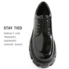 - Cadarços pretos planos da moda para tênis: um novo cadarço premium de cor e comprimento certo para tênis dará aos seus tênis favoritos ou sapatos de lona um novo visual e trará aos seus sapatos muito mais caráter individual.