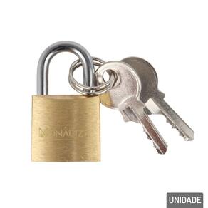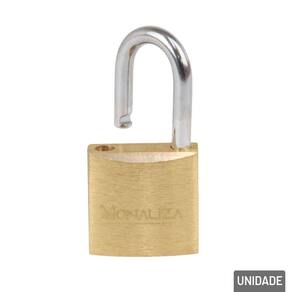 Cadeado 20mm com 2 Chaves Haste Curta Bronze Mantenha seus pertences seguros com praticidade e eficiência com o Cadeado Latão de 20mm com Haste Curta, acompanhado de 2 chaves. Compacto e resistente, é a escolha ideal para aplicações que exigem segurança em espaços reduzidos, sem abrir mão de durabilidade e design discreto.\nA haste curta garante mais resistência a tentativas de arrombamento, sendo perfeita para uso em zíperes de mochilas, maletas, armários, gavetas, pequenos portões, estojos e caixas de ferramentas.\nEspecificações: Marca : MONALIZA\nTipo de material : Aço Inox, Latão\nCores ou Estampa : Dourado\nDimensões do Produto : 3,5 X 2 X 1 CM\nDimensões da Embalagem : 12 X 7,5 X 1 CM\nPeso Bruto (Gramas) : 0.037