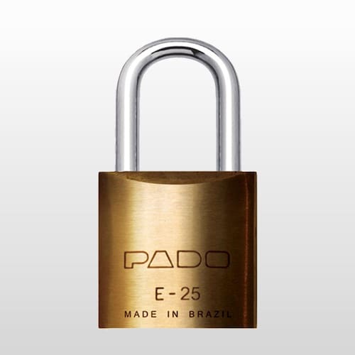Corpo em latão maciço, haste em aço; acompanha 2 chaves em latão.