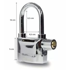 Pode ser usado com ou sem alarme. Resistente a água e ao tempo. Detecta choque e movimento. Manilha de aço com 10mm. Corpo em liga de alumínio (não enferruja). Inclui 3 chaves de corte a laser (não pode ser copiada). Inclui 12 pilhas Ag13 (6 reservas). Peso: 0,480 Kg.