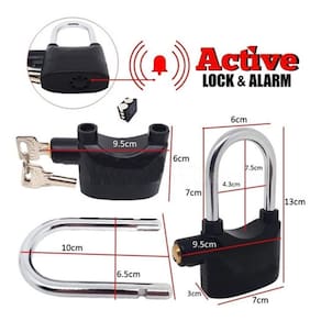 Cadeado kinbar alarm lock utilizado em motos bikes portão, como forma de proteção contra roubos ou furto, muito resistente, composição de aço. Melhor segurança pessoal , ao tentar abrir ele emite sons bem alto inibindo qualquer ação de roubo. . Alarme antifurto sonoro 110dba prata/cromado ou preto Especificações: - sirene de 110db - alarme na parte interior do corpo - alarme sob a água, impermeável - pode ser com alarme ou sem alarme - alarme de três tons Corpo do cadeado: - corpo endurecido da liga de zinco - resistente à corrosão - resistente ao tempo - anti broca - módulo de alarme removível - haste do cadeado: Aço inoxidável endurecido Bateria: 12hs de disparo Itens inclusos 1 cadeado 3 chaves 1 kit de bateria reserva Medidas do cadeado. Largura 6,5 cm Comprimento 12 cm Espessura 10 mm Diâmetro da haste 9 mm Obs: escolher a cor antes de efetuar a compra. Especificações técnicas: :: prazo de envio Após a confirmação do pagamento em :: atendimento Caso tenha dúvidas, utilize os canais de atendimento. Possuímos uma equipe altamente qualificada para respondê-los a rapidamente. :: pós-venda Não tenha dúvidas nós vendemos bem para vendermos sempre conte com nosso Atendimento em horário comercial sempre que precisar. :: dicas de compra 1. Leia todo o anúncio antes de comprar. 2. Verifique se seus dados de contato estão atualizados no momento da compra. 3. Confira o seu endereço de recebimento, pois não temos como alterá-lo. :: Este produto possui de 3 meses contra defeitos de fabricação á partir do Recebimento. Para acionar a será necessário enviar o produto de volta junto com Suas embalagens recebidas, por isso é de suma importância guardar e conservar as embalagens Marca: Não Informado
