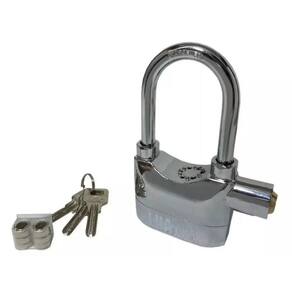 Cadeado de alça longa com alarme de 110 dB dispara ao menor movimento ou impacto. Pode ser utilizado em: motos, bicicletas, portas e portões, armários, entre outros. Utilização com ou sem alarme sonoro. - 1 toque curto para armar - 3 toques curtos para informar que vai disparar