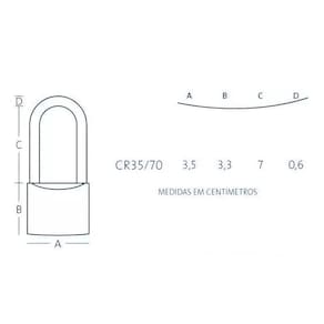 Acompanha: 01 cadeado haste longa 35x70mm com 2 chaves land.