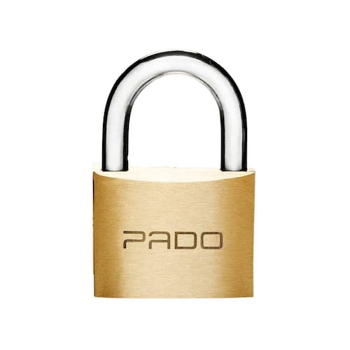 Características do cadeado latão com 2 chaves pado: Material: latão, aço inox e aço carbono. Utilizar apenas óleo mineral. Tamanhos: 20mm, 25mm, 30mm, 35mm e 40mm.