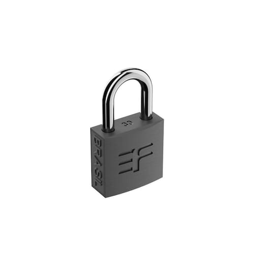 Cadeado Latonado Preto Fosco 30mm - 3f Características: • Corpo do cadeado e tambor em zamac; • Haste do cadeado em aço carbono niquelado; • Pinos e contra-pinos de latão; • Molas de aço inoxidável. Diferenciais: • Essa linha de produtos apresenta maior resistência e maior durabilidade; • Possui os acabamentos latonado oxidado e preto fosco. Tempo de garantia: 3 meses. ** Preço do produto em PC **