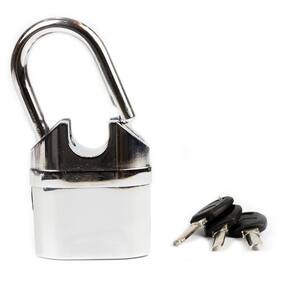 Sistema de alarme automático e sistema de bloqueio Módulo de alarme removível e/ou pode ser utilizado com alarme ou sem alarme Aço inoxidável endurecido processado a quente e manilha anti-torção À prova de spray de gelo, resistente a corrosão, resistente ao sal e às intempéries Anti Drill O pára-choque anti-choque evita arranhões Sensor duplo de choque e movimento Ativação com chave Baterias à prova de balas Pilhas de 12 botões (estilo relógio digital), duração da bateria: 6 meses Marca: Lock Alarm