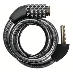 Cadeado para bicicleta com segredo Revestimento em silicone Tamanho: 12x1200mm Combinação de 5 dígitos. Combinação inicial - 0000 A senha pode ser alterada.