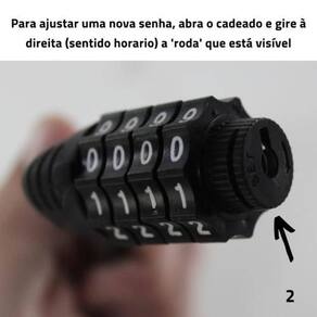 - Cadeado resistente e durável - Cabo de aço revestido em PVC - Segredo de combinação numérica - Tamanho de 1200mm - Proteção contra furtos e arrombamentos